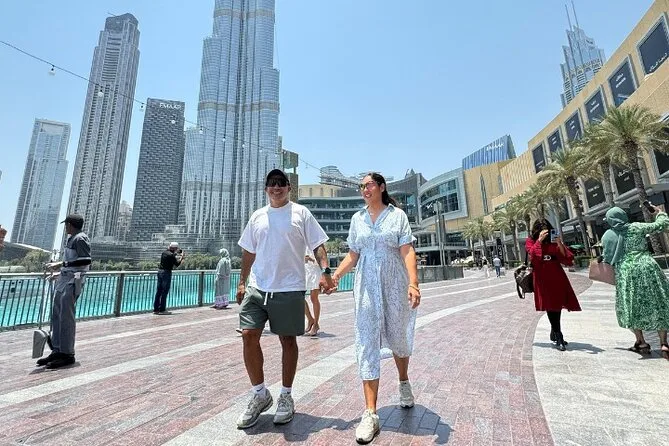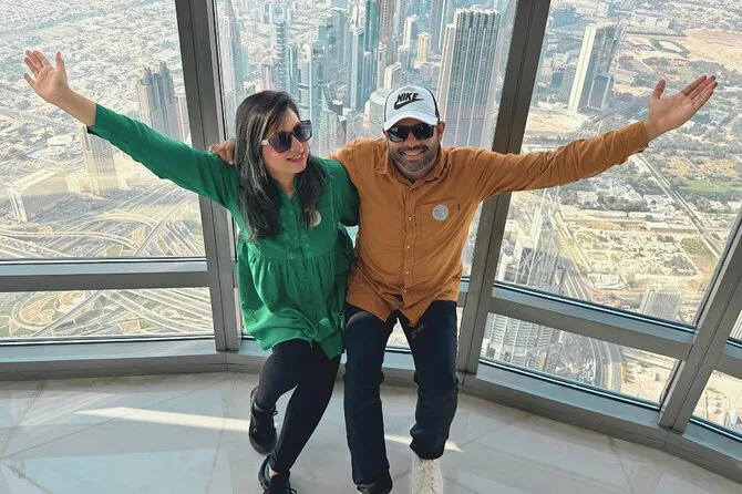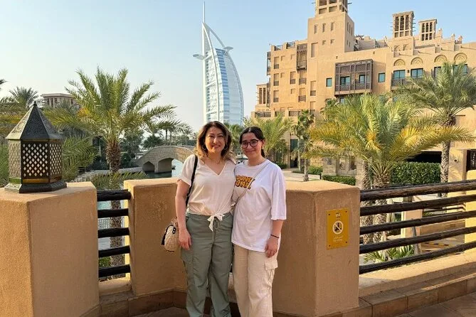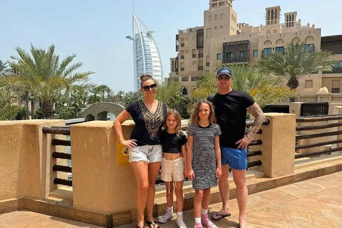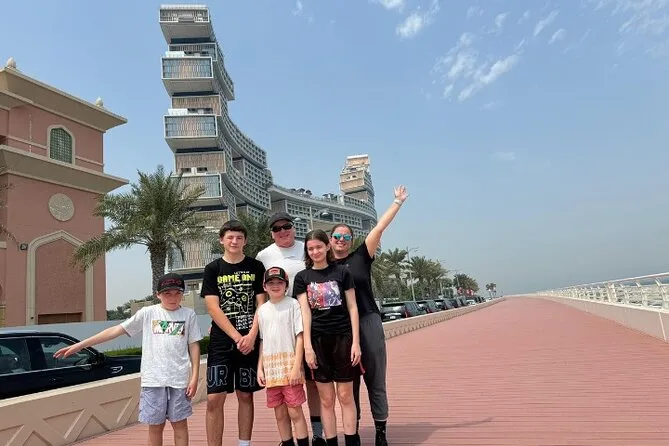 Your day includes hotel pickup and drop-off anywhere in Dubai (even airport or cruise port), entry tickets for Burj Khalifa’s upper decks during non-prime hours, an abra boat ride across Dubai Creek, all major photo stops from Palm Jumeirah to Atlantis to Jumeirah Mosque (outside only), plus plenty of water bottles along the way—all with an English-speaking local guide by your side in an air-conditioned private car.