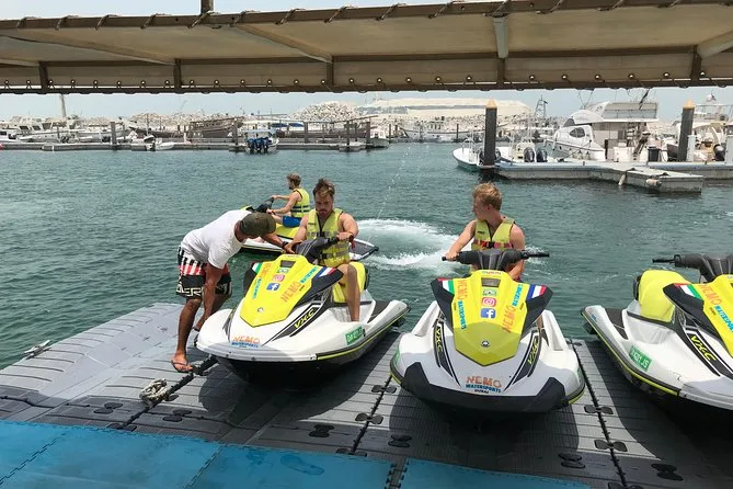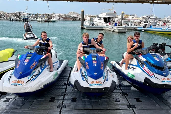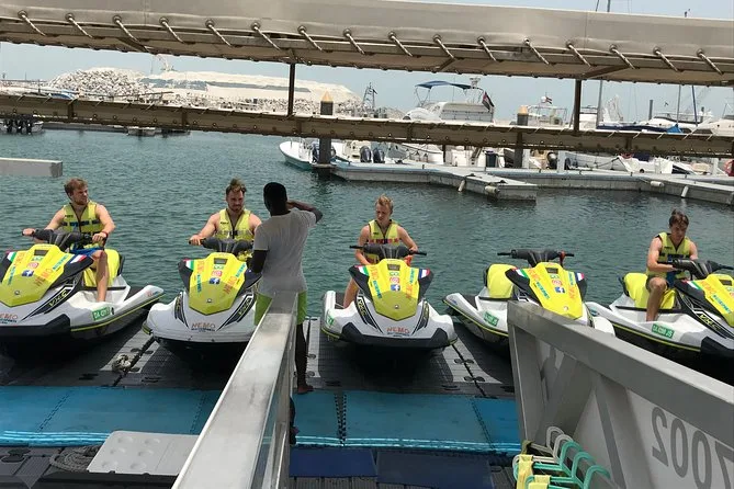 Your day includes a certified instructor leading your group from Umm Suqeim Marina with all safety equipment provided, complimentary water, free photos and videos transferred after your ride, use of lockers and showers at the marina, WiFi access and charging stations onsite, plus one free ice cream per jet ski at Lumiere Café just steps away from where you finish up—plus there’s even a discount if you want more snacks afterwards.