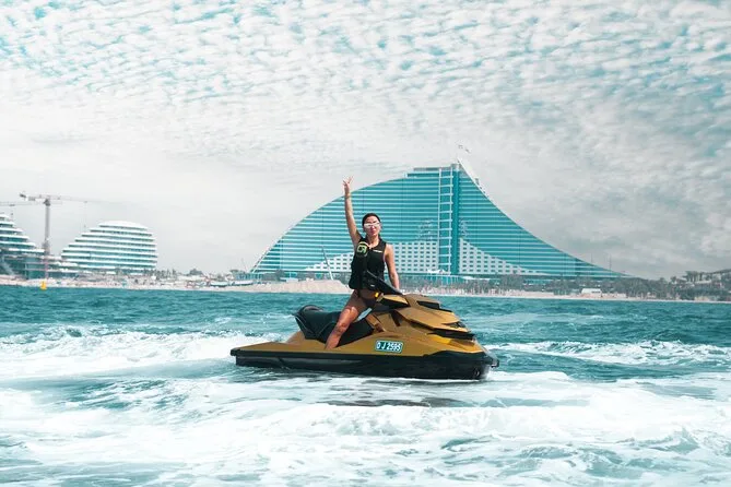 You’ll ride a gold jet ski along Dubai’s coastline with music playing, guided by a local who knows every landmark—from Burj Khalifa to Atlantis on Palm Jumeirah. There’s time for photos in front of Burj Al Arab and plenty of laughs along the way—a quick adventure that’ll stick with you every time you see Dubai’s skyline again.