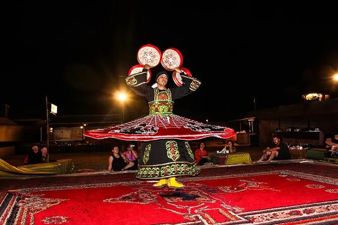 The camp itself had this low hum from people chatting and music starting up. We were welcomed with tiny cups of Arabic coffee and sticky dates — honestly, both tasted better than I expected after all that dust. A woman painted henna on my hand while her daughter watched cartoons on her phone nearby. Later, sitting cross-legged on cushions eating smoky grilled chicken under strings of lights, I tried to copy some dance moves from the show (not well). The fire dancer’s performance left everyone wide-eyed for a minute or two.