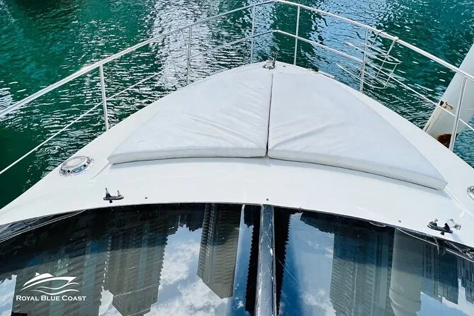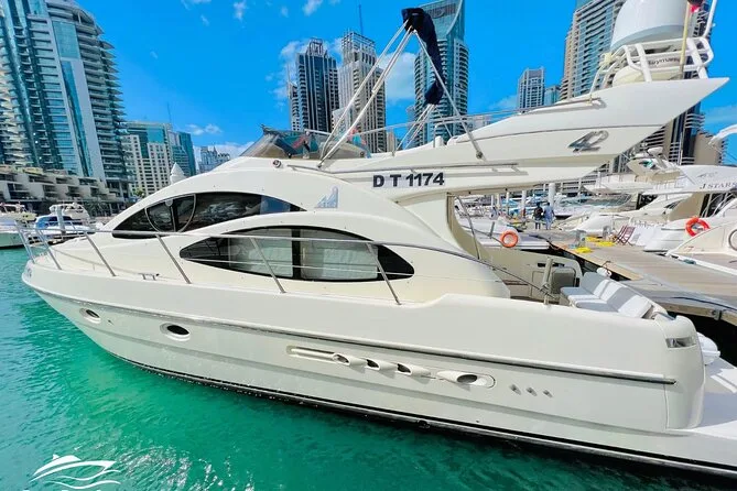 Your experience includes three hours aboard a private yacht departing from Dubai Marina with a professional licensed captain and crew looking after you throughout. You’ll have mineral water kept cold in an ice box, fresh towels ready for use after swimming or sunbathing on deck, plus all safety equipment provided so you can relax completely as you take in those city views.