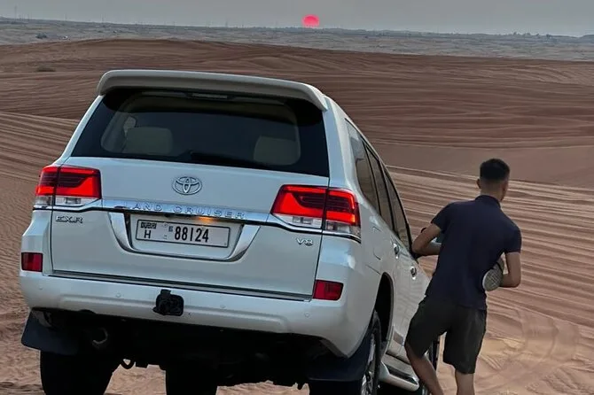 Dune bashing was next — basically clinging on while Ahmed laughed and took us up these ridiculous slopes. There was this moment at the top where everything went silent except for wind and someone’s nervous laugh (maybe mine). Sandboarding looked easy until I tried to stand up — let’s just say gravity works fast here. We ended up covered in red dust and grinning like idiots.