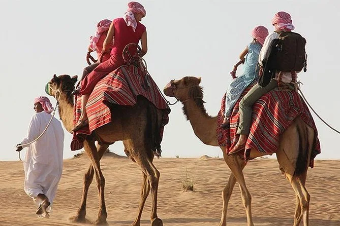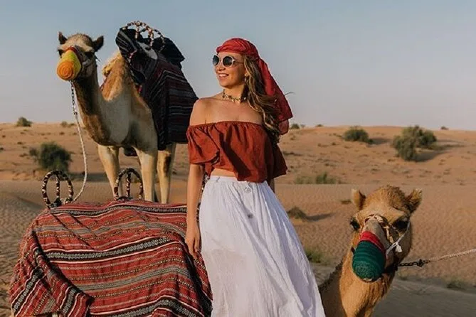 Your day includes private hotel pickup and drop-off in Dubai by 4x4 vehicle, guided dune bashing on Lahbab’s red dunes, a traditional camel ride with cultural stories from your local guide, optional quad biking or dune buggy rides if you want them, sandboarding sessions (with plenty of laughs), photo stops including time with a falcon for pictures, and all necessary equipment provided before heading back to your hotel relaxed — or maybe just sandy.
