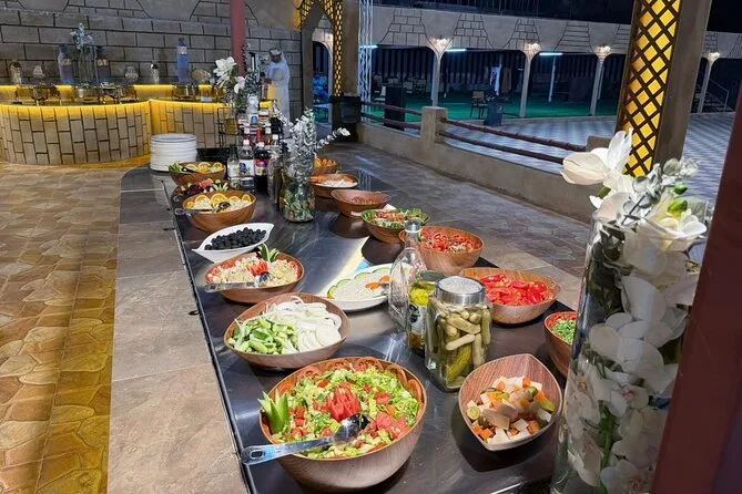 Your day includes shared hotel pickup by 4x4 from anywhere in Dubai out to Lahbab’s red dunes for quad biking, sandboarding, dune bashing with a skilled driver, and a short camel ride—all guided by locals. At sunset you’ll be welcomed into a premium desert camp for a BBQ buffet dinner with live dance shows plus options like henna painting and traditional dress photos before heading back to your hotel that night.
