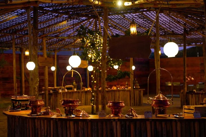 We stopped for photos right as the light got soft and gold. There was this moment where everything went quiet except for wind brushing over the dunes. Then someone from another group tried sandboarding and wiped out spectacularly; everyone cheered. It was friendly — people from everywhere just kind of sharing this weirdly beautiful nothingness. Later at Al Khayma Camp, they handed us tiny cups of qahwa coffee (I tried to sip politely — it’s bitter but sort of comforting) with sweet gaymat and dates. The camp itself glowed with lanterns and smelled like grilled meat and spices drifting past every so often.