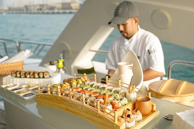 “You ever tried sushi while floating past the Burj Al Arab?” That’s what Samir asked as we stepped barefoot onto the deck — shoes off was the rule, which felt odd at first but honestly kind of freeing. The yacht, Encore, was bigger than I’d pictured and there was this low thrum from the engines that mixed with laughter and clinking glasses. Even before we left Dubai Harbour, you could smell something sharp and sweet — maybe yuzu? — drifting from the kitchen. I kept glancing at the skyline, half-distracted by all the lights.