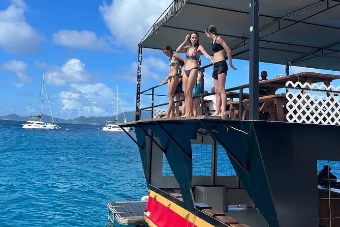 Your day includes all customs paperwork handled by your crew so you can relax from start to finish. Enjoy an open bar onboard with bottled water and alcoholic drinks as you travel between stops like Great Harbor (with Foxy’s), White Bay (Soggy Dollar Bar), Diamond Cay (Bubbly Pool), Sandy Spit photo op, and Norman Island’s Willy T pirate ship—all led by your captain plus fuel covered too.