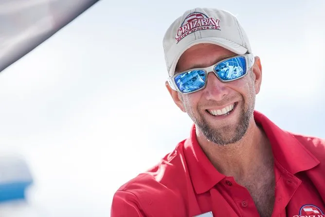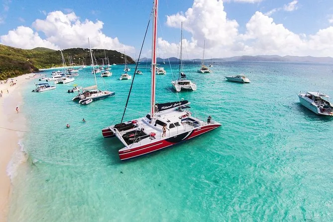 The catamaran departs from St John; specific pickup details are provided upon booking.