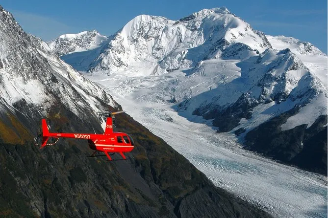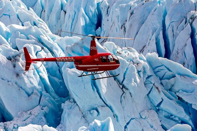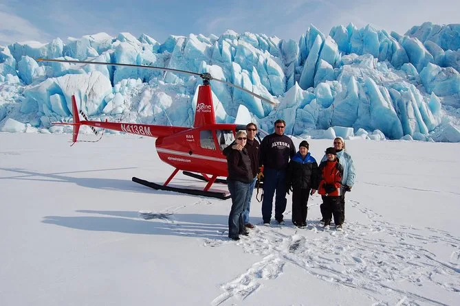 Your day includes a safety briefing at Girdwood airport before boarding your helicopter for a guided flight over glaciers and mountains of Alaska’s Chugach range. You’ll land directly on the glacier for a 30-minute walk with your pilot—all taxes and fees are covered in advance so you can just focus on being there.
