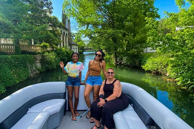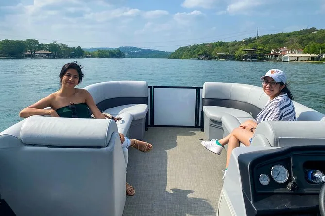Your afternoon includes a 2-hour guided pontoon cruise along Lake Austin with full sun-shading overhead canopies, free cold bottled water handed out by your captain-guide, use of life vests for everyone onboard, all fuel costs covered—and plenty of stories about local landmarks as you drift past them together before heading back to shore.