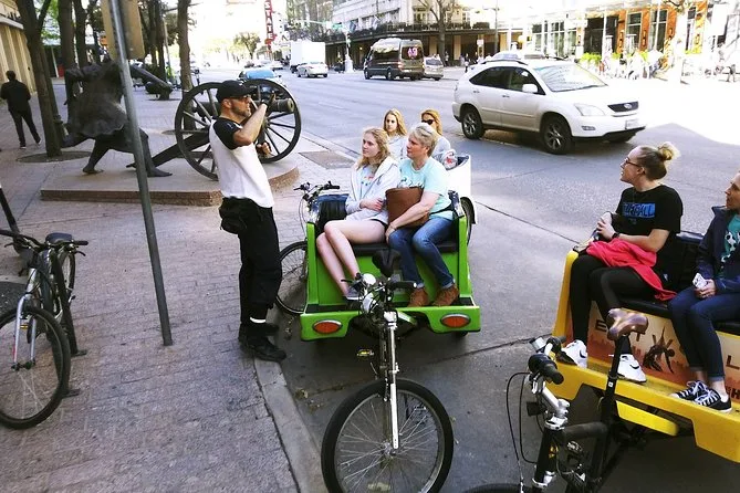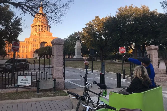 Your day includes private transportation by pedicab with hotel pickup in downtown Austin, guided stops at historic sites like the Texas Capitol and Driskill Hotel, time to explore on foot if you want it, plus stories from your local guide before returning whenever you’re ready.