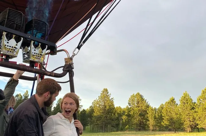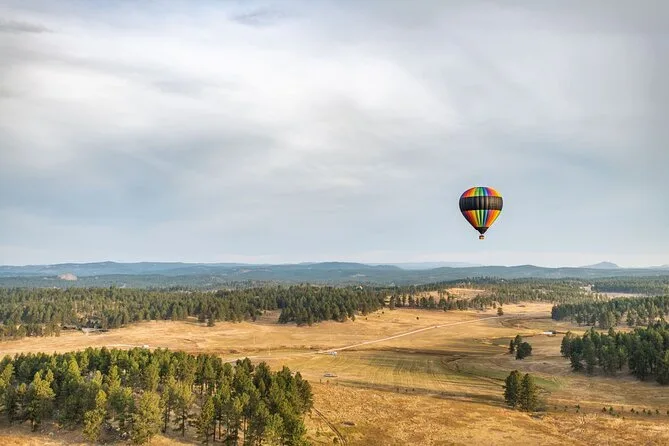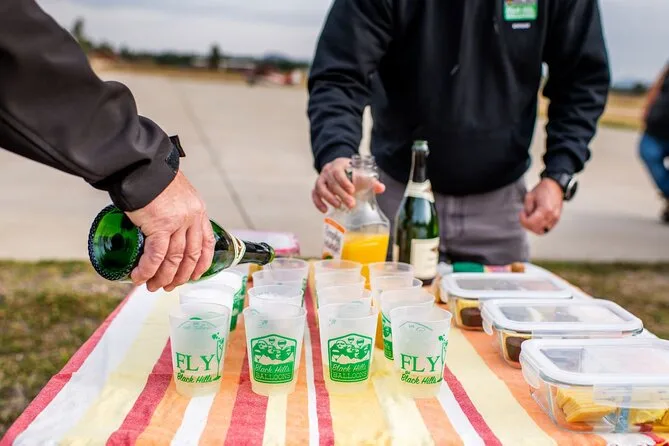 Your day includes bottled water throughout, all fees and taxes covered, about an hour floating above the Black Hills National Forest with an experienced local pilot, plus a glass of champagne and light snacks shared together after landing before heading back into town on your own schedule.