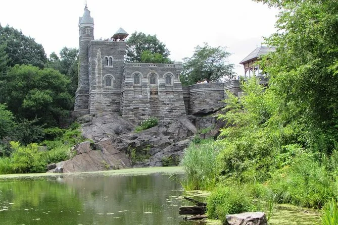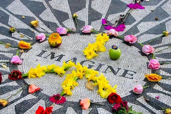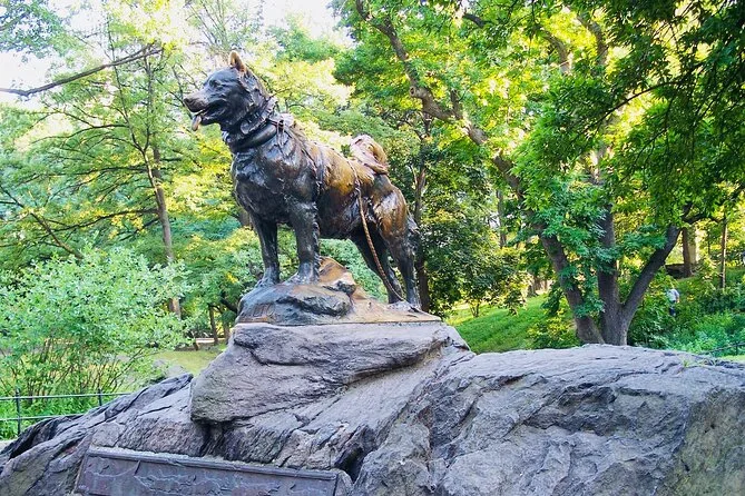 The tour includes stops or views of Bow Bridge, Bethesda Fountain, Strawberry Fields (John Lennon Memorial), Belvedere Castle, Jacqueline Kennedy Onassis Reservoir, Shakespeare Garden, and Balto Statue.