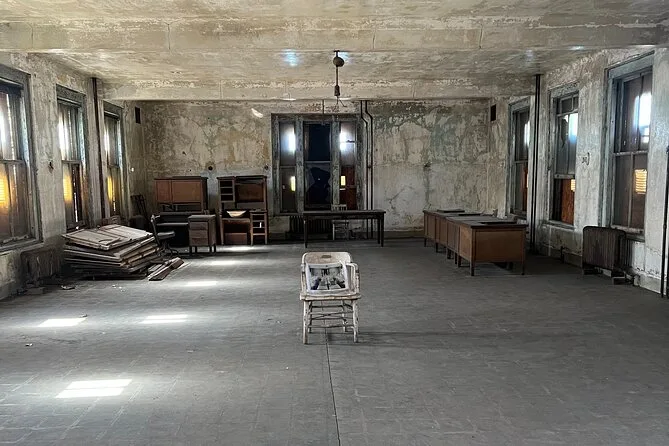 Your visit includes exclusive entry to Ellis Island's abandoned hospital complex with all admission fees covered; you’ll get a hard hat on-site for safety and be led by an expert local guide throughout your 90-minute walk among historic wards and art installations before heading back to Manhattan.