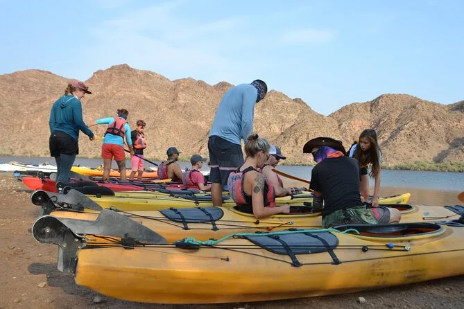 Your day includes either hotel pickup or self-drive check-in at Willow Beach marina (no rideshare service available), all kayaking equipment—single or tandem kayak as you prefer—plus bottled water, snacks along the way, deli-style lunch on a remote river beach, guidance from certified local guides sharing canyon history and wildlife tips before returning to Las Vegas or your car in late afternoon.