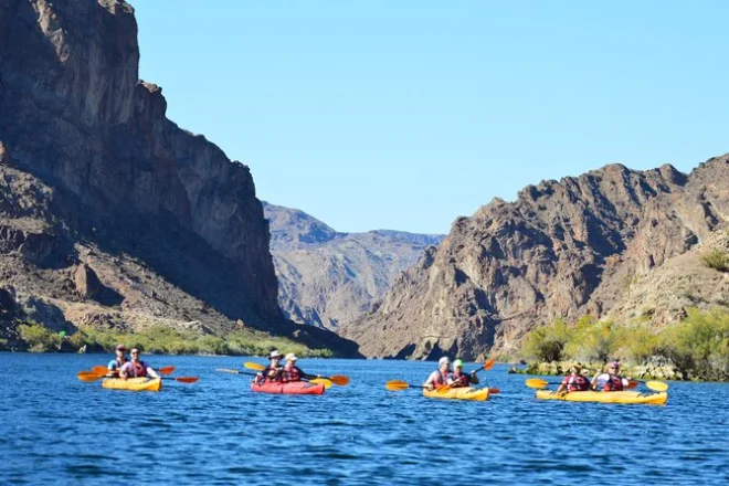 Your day includes use of quality kayaks (single or tandem), paddles, life vests—even larger sizes if needed—and guidance from a certified local guide. Bottled water and snacks are provided along the way. If you pick the shuttle option when booking, round-trip hotel pickup from three major Las Vegas hotels is also covered before returning after your paddle adventure.