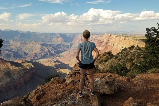 By the time we reached the Grand Canyon South Rim, I was already a little dizzy from all that space and light. The first overlook just stopped us cold — there’s no way to prepare for that drop or those colors. Lunch at El Tovar felt almost too fancy after dusty trails (the bread was warm though, and I still remember that), but our server joked about how everyone comes in with canyon hair so we didn’t feel out of place. We had time to wander along the rim from Mather Point to Yavapai Point; it’s not far but you end up stopping every few steps because something new catches your eye — a raven gliding below, or just a weird shadow across the rocks.
