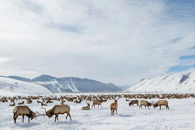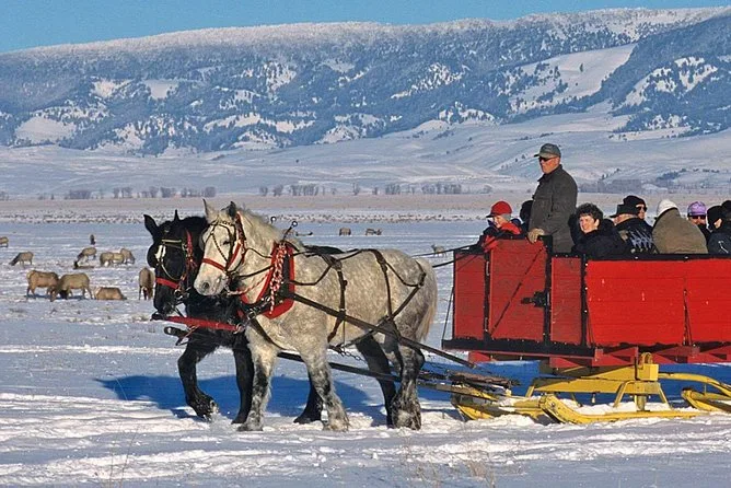 The tour is a full-day adventure including morning wildlife viewing in Grand Teton and an afternoon sleigh ride at the National Elk Refuge.