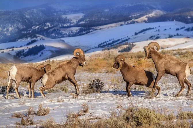 You may spot moose, wolves, bison, bighorn sheep, eagles, coyotes, and large elk herds during the tour.