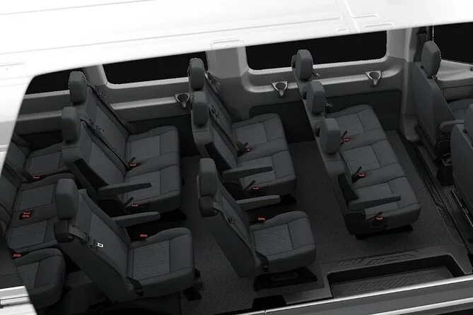 The van has plenty of space for up to 14 people and their luggage. If you have extra-large items, let us know ahead of time.
