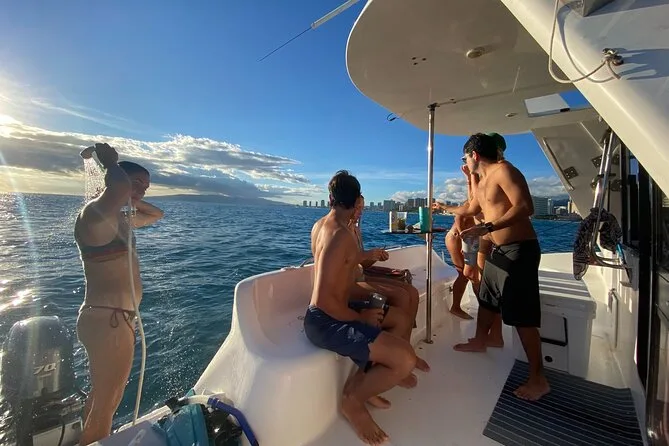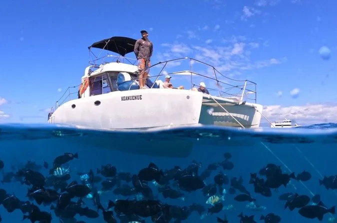 Your day includes exclusive use of a private catamaran departing from Kewalo Basin Harbor in Honolulu—with all snorkeling equipment provided, plus bottled water and soda onboard. You can play your own music through Bluetooth speakers and bring any extra snacks or drinks you want as you explore Waikiki Beach and Diamond Head with a local guide before returning relaxed (and maybe salty) by afternoon’s end.