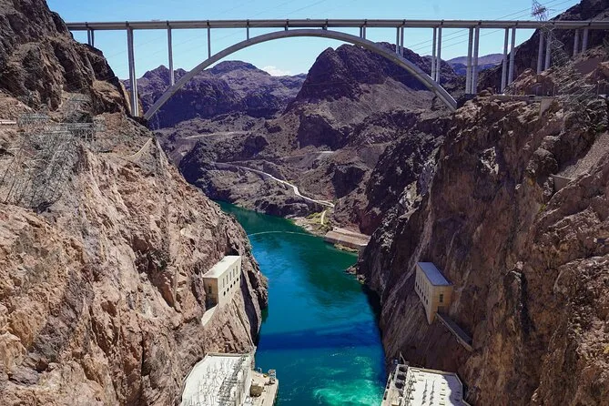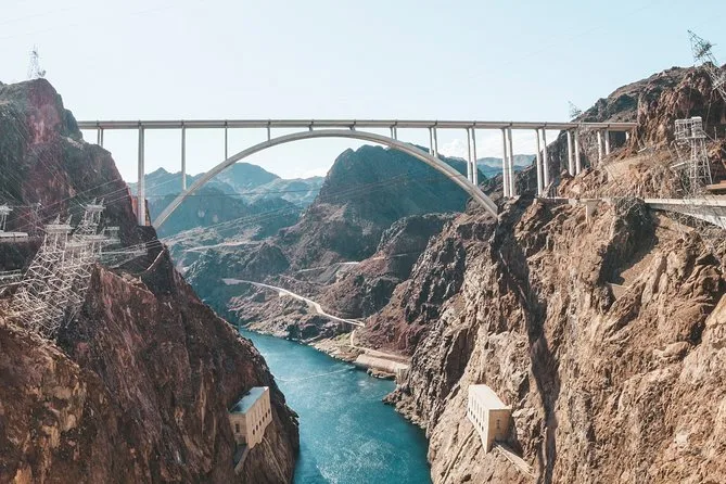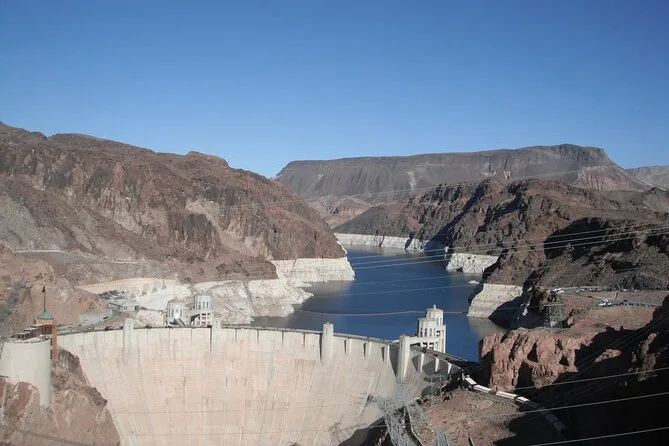 Your day includes hotel pickup and drop-off from select Las Vegas hotels, entry tickets to Hoover Dam’s Visitor Center and Generator Room with a ranger-led tour through tunnels, free WiFi onboard your air-conditioned vehicle, plus time to explore Boulder City’s museum and shops before heading back in comfort.