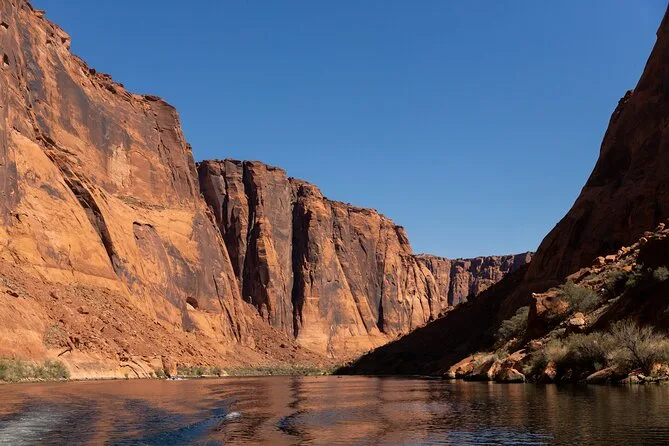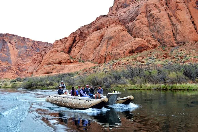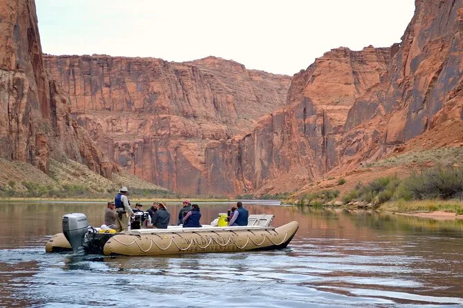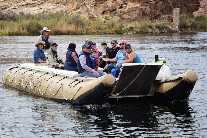 You’ll see Horseshoe Bend from below, Glen Canyon cliffs, ancient petroglyphs at Petroglyph Beach, Marble Canyon, Vermillion Cliffs, and Navajo Bridge.