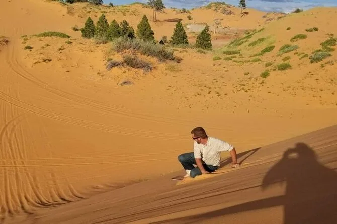Your day includes pickup in Kanab by your local guide who drives the UTV out to Peekaboo Slot Canyon, bottled water to keep you cool, all equipment for sandboarding if you want to give it a try (standing or sitting), plus plenty of time to explore inside the slot canyon itself before heading back.