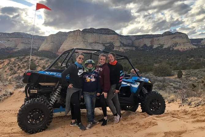 Your experience includes use of a Polaris RZR UTV with an experienced local guide leading each group through Kanab’s red rock country. Helmets and goggles are provided for safety (and required). A cooler full of cold water rides along so you can refill during stops—just bring your own small backpack for hiking portions if you want extra snacks or drinks.