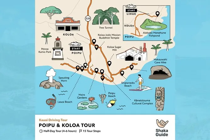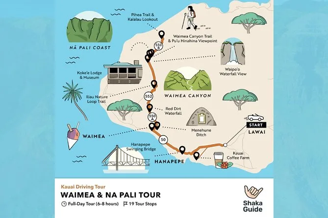 You can choose any of the four included routes (North Shore, Wailua Valley & Waterfalls, Poipu & Koloa Town, Waimea Canyon & Na Pali) and start when you want.