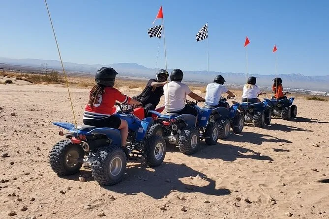 ATV adventure across Nellis Dunes desert trails with skyline views