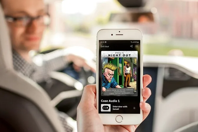 Your day includes access to both walking and driving maps via mobile app, live GPS directions with turn-by-turn guidance, an immersive audio story voiced by professional actors, built-in scoring so you can compete or collaborate, plus customer service support if you hit any snags along the way.