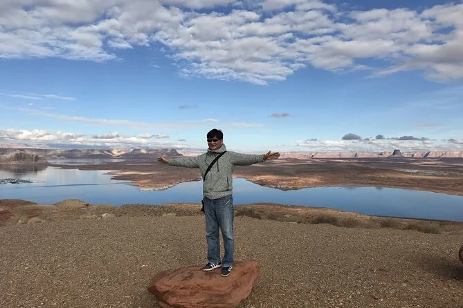 Lake Powell shimmered in the distance on our way back — all blues and reds blending together under late afternoon sun. Jamie pointed out Glen Canyon Dam but honestly by then my brain was full of colors and stories and maybe too many snacks. There’s something about seeing these places in person that sticks with you longer than any photo does.
