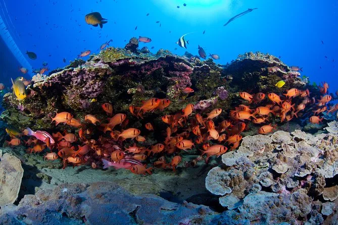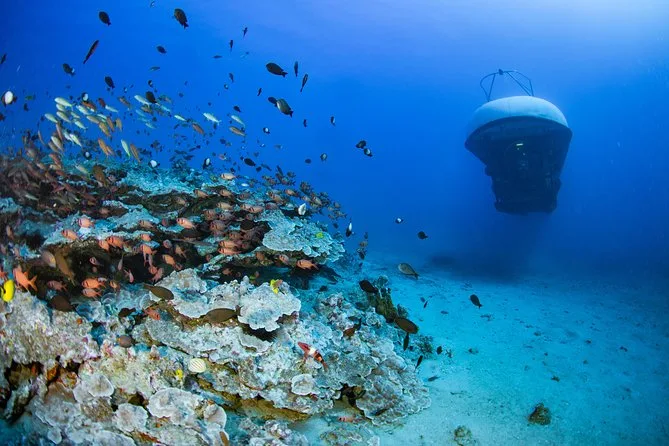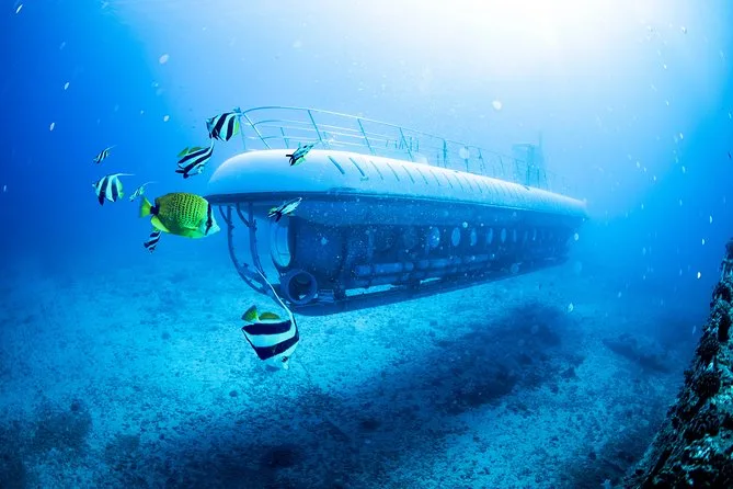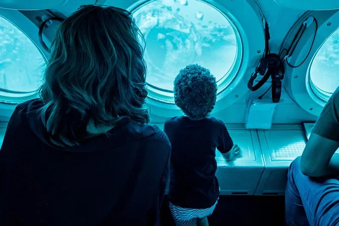 The submarine itself felt smaller than I pictured—tight but oddly cozy, with those thick glass portholes and cool air (thank god for air conditioning). When we started sinking, my ears popped a little and everything outside turned this deep blue-green. You could see yellow tangs darting around right away, plus these fat parrotfish chewing on coral. Someone pointed out a stingray gliding by; I almost missed it because I was too busy watching bubbles drift past my window. It smelled faintly metallic inside—not bad, just different from the sea air above. Our guide switched between English and Japanese for some folks in our group, which made me realize how many kinds of people come here hoping for that same weird thrill.