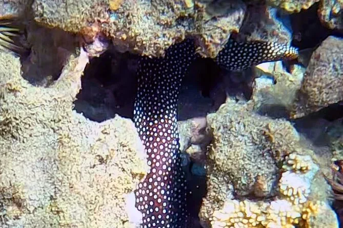 You might spot sea turtles, eels, octopus, manta rays, seals, schools of fish, and humpback whales (December–April).