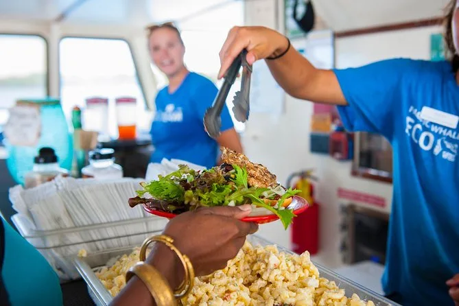 Lunch was simple but hit the spot: teriyaki chicken, hot dogs if you wanted them, salads that tasted fresh enough to make you forget you were on a boat miles from shore. Kids lined up for cookies while adults compared GoPro footage. On the way back toward Ma'alaea Harbor, I noticed how sunburned everyone’s noses were getting despite all that reef-safe sunscreen they kept reminding us about — mine included. Still think about that turtle sometimes when things get noisy at home.