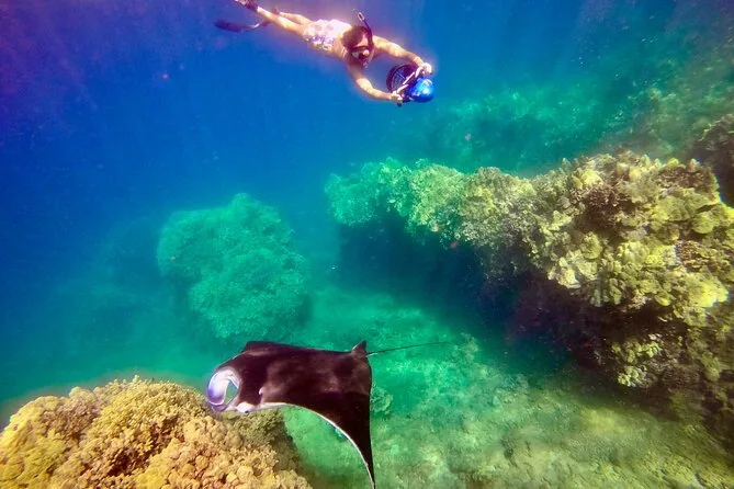 The reef here is quieter than other Maui spots — no big crowds or boats revving nearby, just us and the occasional shout muffled by water. Sometimes you’d catch a glimpse of an octopus curled into the rocks or spot rays drifting below if you looked long enough. Kai would gesture and scribble quick notes on his underwater slate (“Honu!” for turtle), which made me laugh because my handwriting would’ve been worse. He snapped some photos too — not included unless you wanted to buy them later, but honestly I was more focused on trying not to crash into coral.