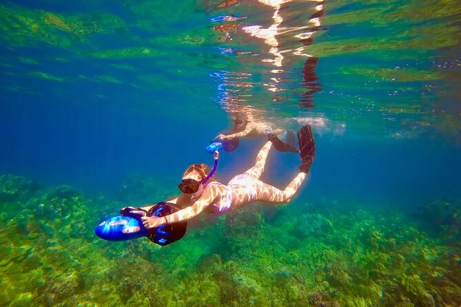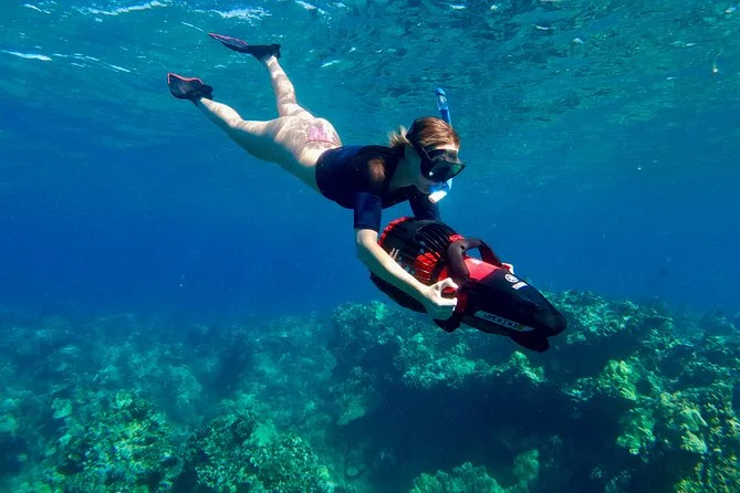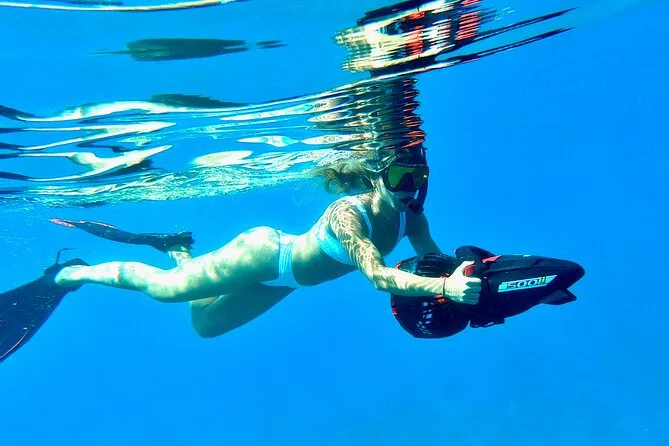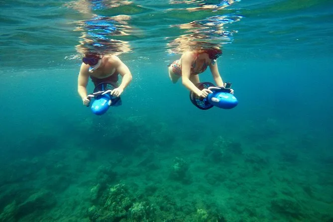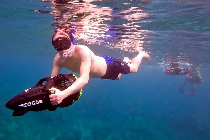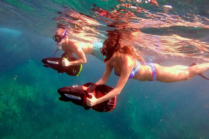 The tour includes an underwater sea scooter, mask, snorkel, fins and lifejacket.