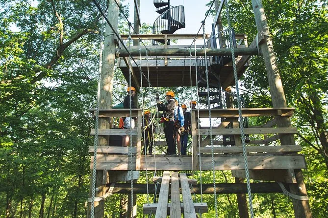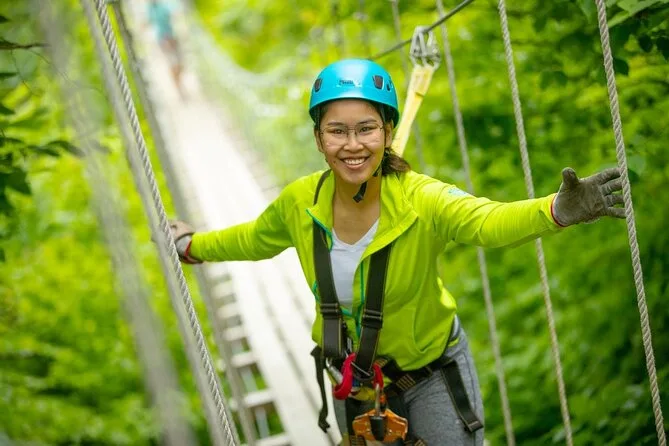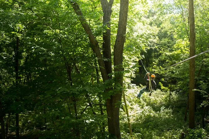 Climbing the spiral staircase up to the higher lines, I realized my legs were shaking more from excitement than nerves by then. The view over the river valley is…well, it’s big. You can see green stretching out forever, sunlight flickering through leaves. Crossing that suspension bridge — 170 feet long — was wobbly in all the ways you’d expect, but weirdly fun too. By the time we hit those last fast ziplines, everyone was whooping or screaming or both. I still think about that last rush of wind when we landed; it sticks with you longer than you’d guess.