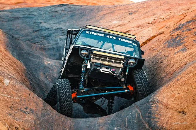 The tour uses custom-built off-road vehicles—not Jeeps or Hummers—with safety harnesses for each guest.
