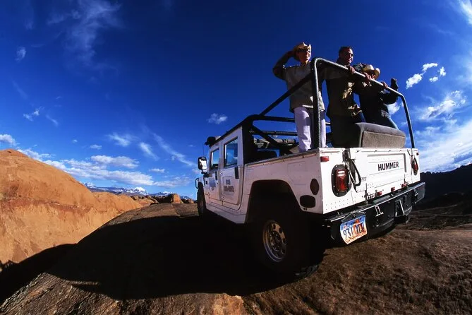 You’ll grip your seat as your Hummer crawls up Moab’s Hell’s Revenge Trail with a local guide at the wheel. Expect wild slickrock climbs, quiet moments overlooking canyons and Arches, plus a stop at real dinosaur tracks. Snacks are included — along with plenty of stories and laughs from your guide.