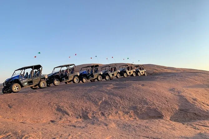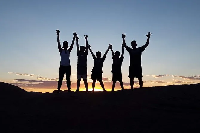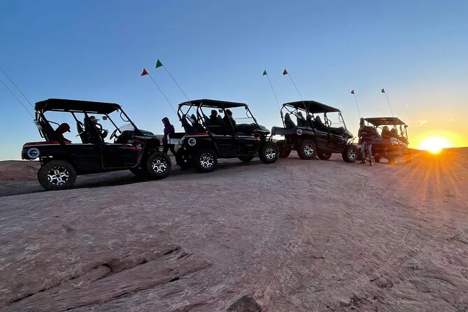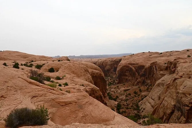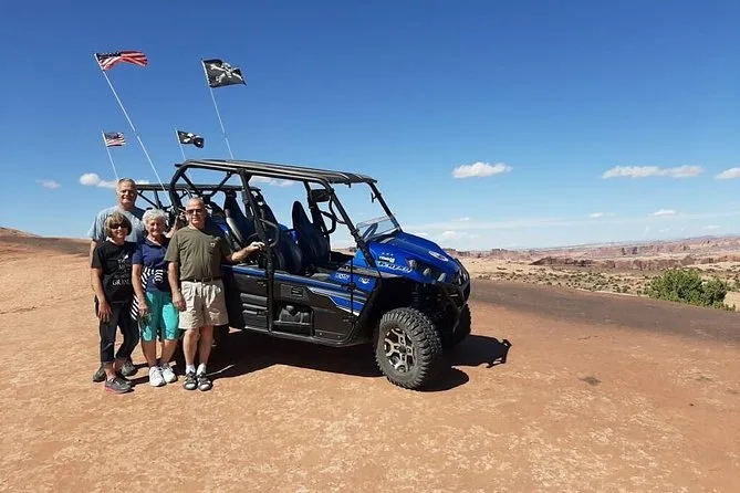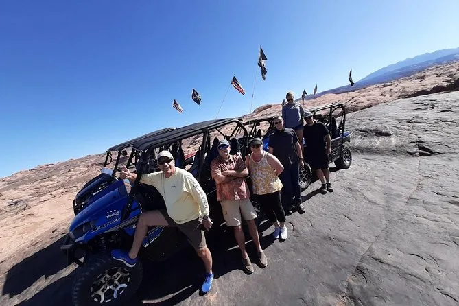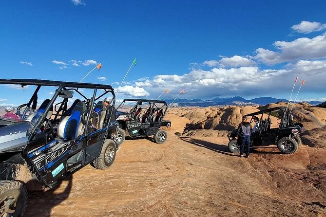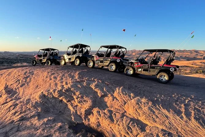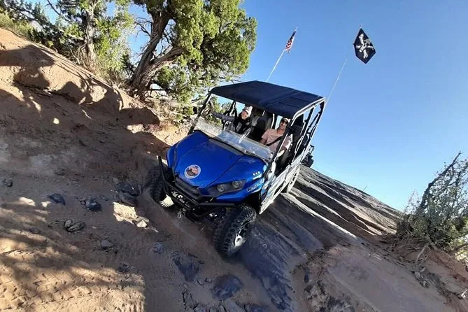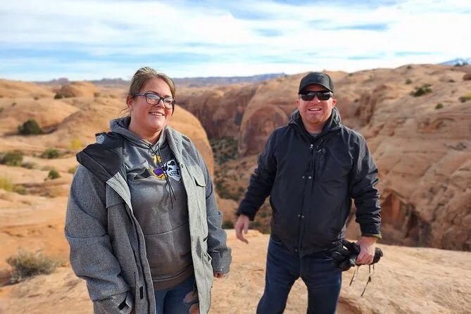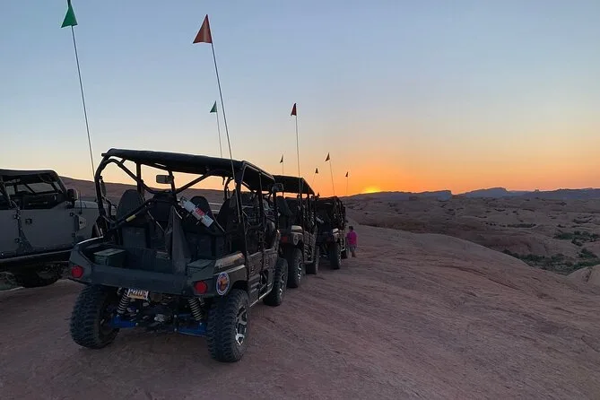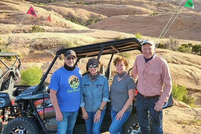 Your day includes use of your own 4-passenger vehicle on Hell’s Revenge trail with all fees and taxes covered, plus snacks like Rice Krispy Treats and bottled water along the route—your local guide leads the way as you explore Moab’s wildest slickrock terrain together.
