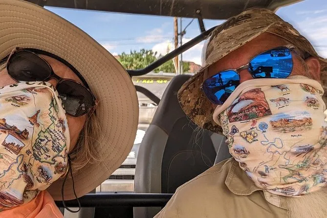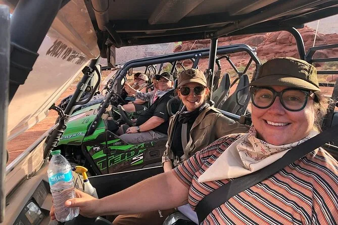 Your day includes meeting at the Moab Tourism Center for check-in, bottled water to keep you going in the desert air, a guided ride in an automatic four-seat UTV (you get to drive), narration from your local guide about geology and ancient cultures along Kane Creek Road—and plenty of stops for photos and petroglyph viewing before returning to town.