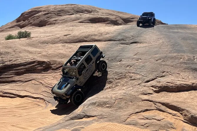 You’ll get behind the wheel of a custom Jeep in Moab, following your local guide across legendary trails like Hell’s Revenge and Fins N Things. Expect steep climbs, wild descents, radio banter, and huge desert views. There’s bottled water to keep you going — but honestly, adrenaline might do the trick.
