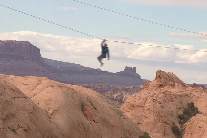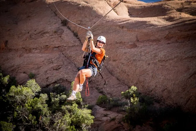 Your day includes private transportation from Moab out to the canyons plus all harnesses, helmets, and safety gear needed for every zip line launch — just bring your nerves (and maybe sunglasses) because everything else is covered by your local guides.