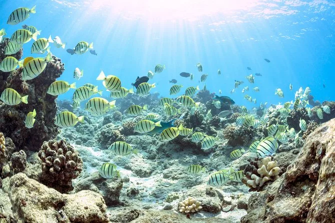 I hesitated before jumping in (cold shock gets me every time), but once you’re under? It’s like floating through an aquarium that forgot it had walls. Coral everywhere: purples and yellows I didn’t know existed outside cartoons. Fish darting past my mask — one bright yellow guy kept following me around like he thought I had snacks. Keahi swam by to check on everyone; he gave my partner a thumbs-up when she finally got her snorkel sorted out. There were sea boards with clear bottoms for anyone nervous about swimming — honestly wish I’d tried one just for fun.