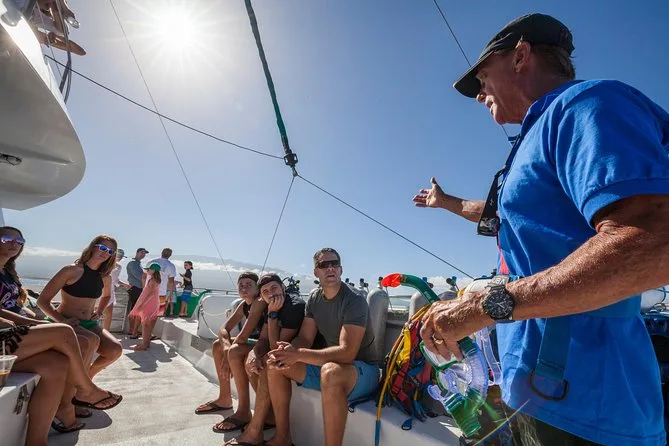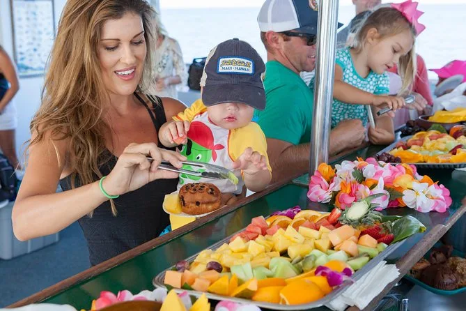 Back on deck, people swapped stories about what they saw (someone swore they spotted an eel). Lunch tasted better than it probably was because we were all salty and hungry — sandwiches, fruit, cold drinks, even beer if you wanted it. On the way back to Maalaea Harbor, I found myself just watching the coastline slide by while kids napped in towels and someone tried to teach their dad how to say “humuhumunukunukuapua’a.” Still not sure he got it right. There’s something about that mix of sunburned strangers turning into friends for a morning that sticks with me more than any photo ever could.