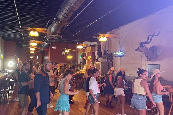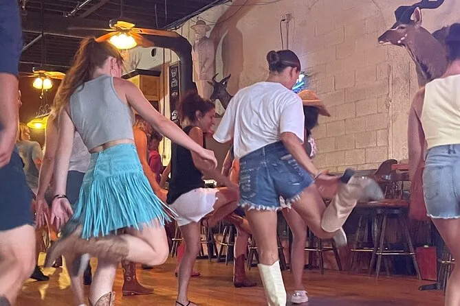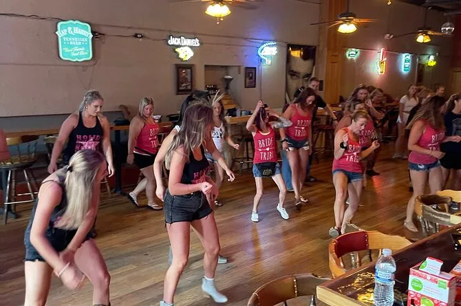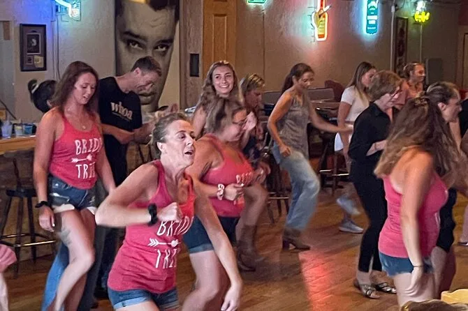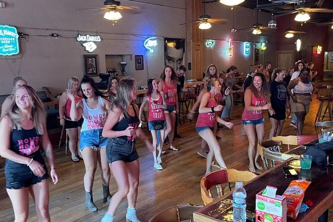 Your experience includes a one-hour group line dancing lesson inside a Broadway honky tonk with friendly local instructors, plenty of bottled water to keep you going, plus a professionally filmed souvenir video sent after your session so you can share or remember your Nashville dance moves later on.