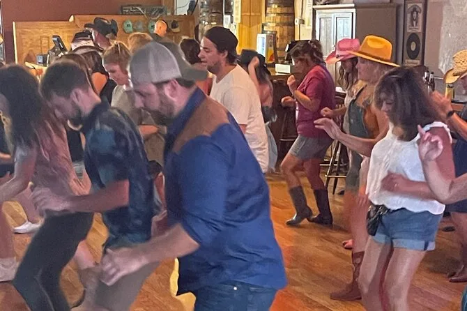 I kept messing up my grapevine step and this guy next to me — think cowboy hat, total tourist — whispered, “Don’t worry, nobody’s watching.” He was right; everyone was too busy laughing at themselves or trying to keep up with Jess’s calls. The music was loud enough to drown out my awkward stomps, which helped. At one point Jess told us these are dances you’ll see everywhere from Texas to Ohio, so you’re basically learning a party trick for life. We did two dances: one simple, one that made my brain work overtime (but somehow my feet followed). They filmed both for the souvenir video — I’m half-dreading seeing myself but also weirdly excited.