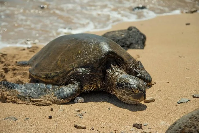 You’ll stop at Puaʻena Point where sea turtles are often spotted but sightings aren’t guaranteed.